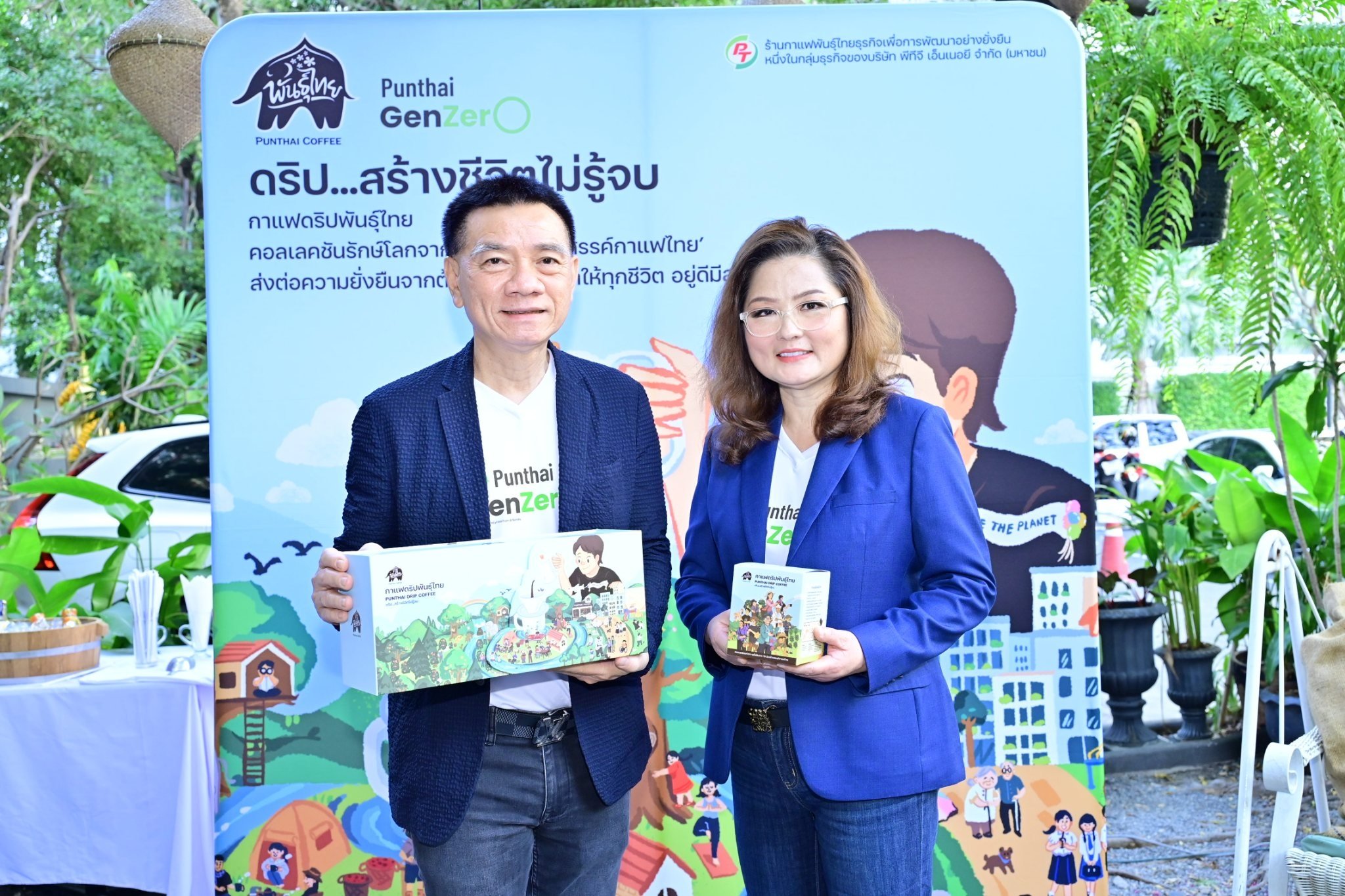 นางสุขวสา ภูชัชวนิชกุล กรรมการผู้จัดการ บริษัท กาแฟพันธุ์ไทย จำกัด เปิดเผยว่า “PTG คือต้นน้ำ ในการวางรากฐานของการอนุรักษ์ฟื้นฟูผืนป่าให้สมบูรณ์ และส่งเสริมการปลูกกาแฟให้ได้ผลผลิตที่ดีมีคุณภาพ กาแฟพันธุ์ไทย คือปลายน้ำในการรับซื้อผลผลิตของเกษตรกร ช่วยเพิ่มโอกาสในการสร้างรายได้ให้คนในชุมชน สามารถเลี้ยงครอบครัวได้ โดยไม่ต้องจากถิ่นฐานบ้านเกิดไปทำงานในเมืองใหญ่ สร้างอนาคตที่ยั่งยืนให้กับชุมชน สังคม และสิ่งแวดล้อมให้เติบโตไปพร้อมๆ กัน”