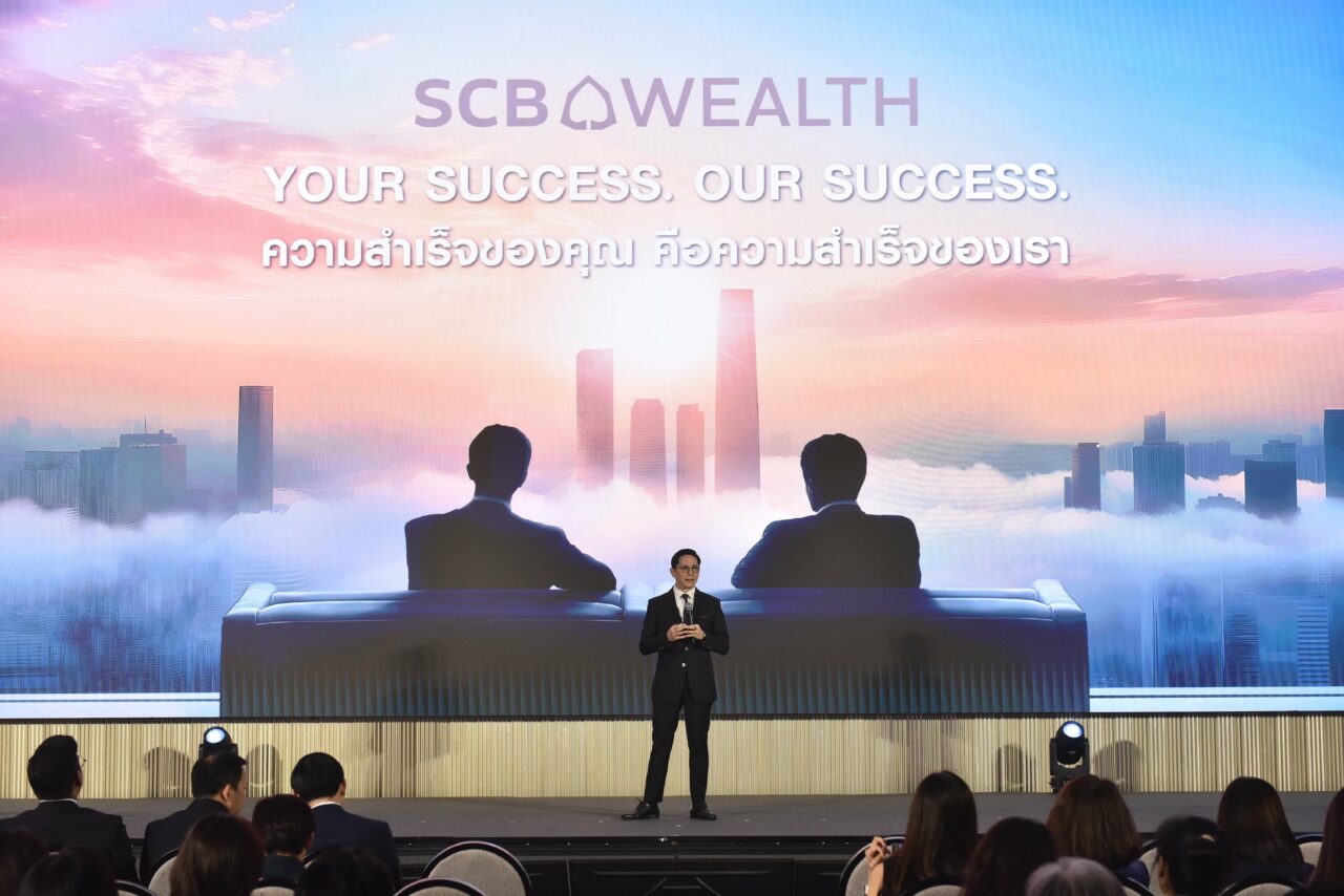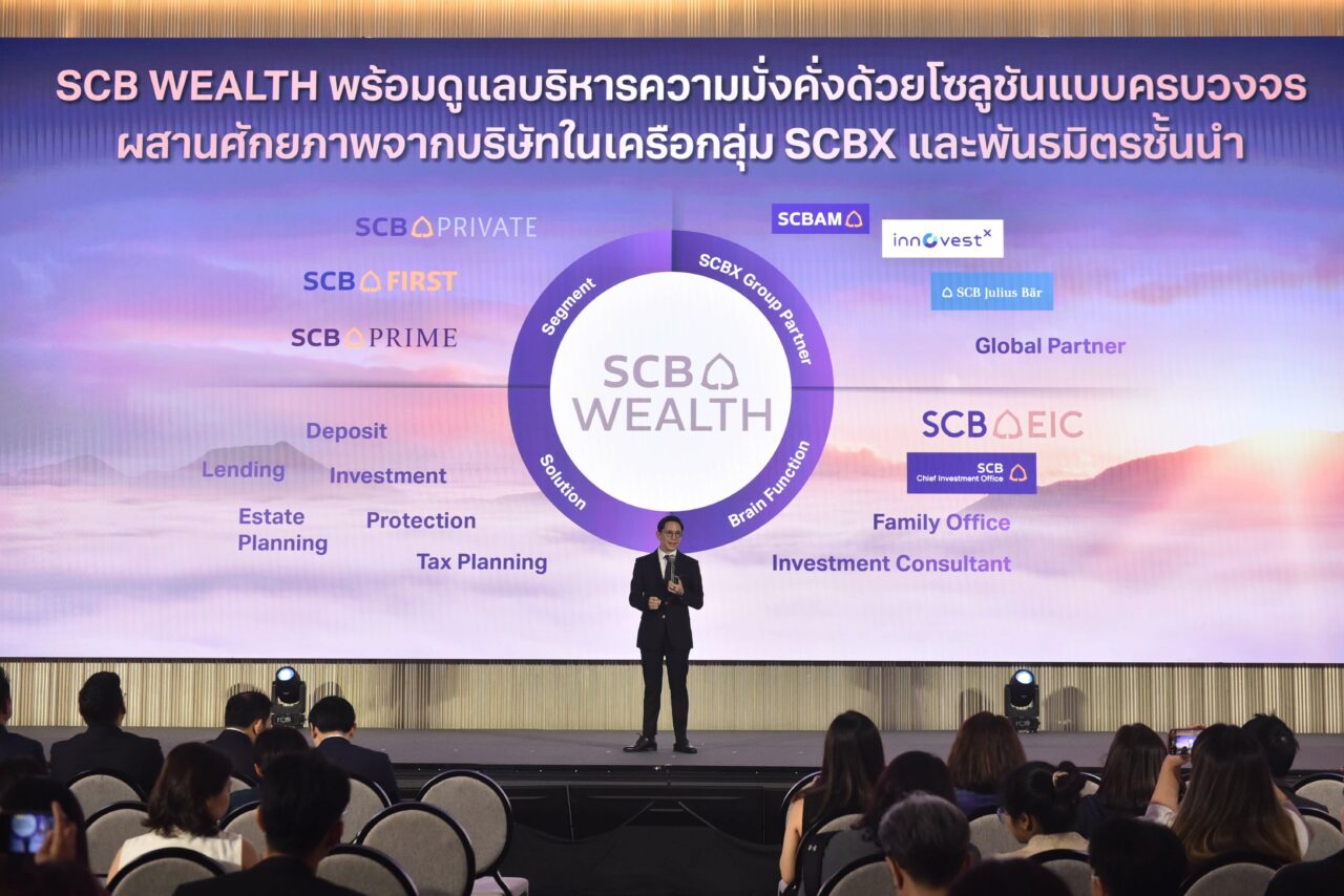คั่งที่ยั่งยืน มีผลิตภัณฑ์และโซลูชันด้านการเงินการลงทุนที่ครบวงจร และในปีนี้เราจึงได้วางเป้าหมายธุรกิจบริหารความมั่งคั่งภายใต้แนวคิด “Your Success. Our Success.” ความสำเร็จของคุณ คือความสำเร็จของเรา นำเสนอโซลูชันด้านการบริหารความมั่งคั่งแบบองค์รวมโดยยึดลูกค้าเป็นศูนย์กลาง (Holistic and Customer-Centric Wealth Management Solution) ผสานศักยภาพจากบริษัทภายใต้กลุ่ม SCBX อาทิ บลจ.ไทยพาณิชย์ จำกัด (SCBAM),บล. อินโนเวสท์ เอกซ์ จำกัด (InnovestX) บล. ไทยพาณิชย์ จูเลียส แบร์ จำกัด (SCB Julius Baer) และพันธมิตรชั้นนำระดับโลกกว่า 30 ราย เข้ากับขีดความสามารถในการให้คำปรึกษา (Advisory Capability) ในการนำเสนอโซลูชันบริหารความมั่งคั่งแบบครบวงจร เพื่อตอบโจทย์ความต้องการของลูกค้า SCB WEALTH จำนวนกว่า 500,000 ราย โดยแบ่งออกเป็น 3 กลุ่มหลัก ได้แก่ SCB PRIME,SCB FIRST และSCB PRIVATE BANKING ทั้งด้านเป้าหมายชีวิต และเป้าหมายด้านการลงทุน โดยยึด 3 กลยุทธ์หลักอันเป็นหัวใจสู่ความสำเร็จในการดำเนินธุรกิจบริหารความมั่งคั่ง ได้แก่