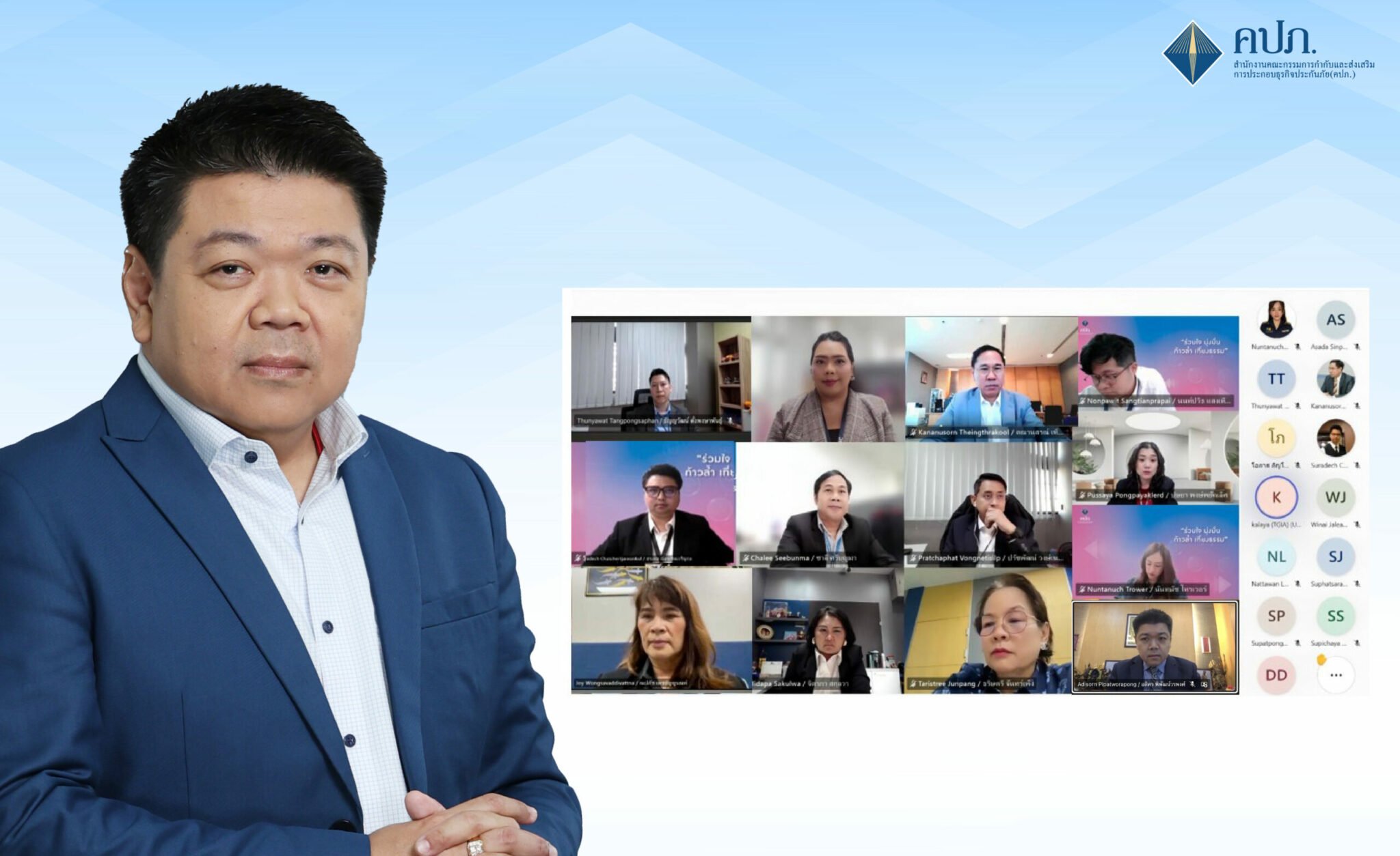 วันที่ 17 เมษายน 2568 สำนักงานคณะกรรมการกำกับและส่งเสริมการประกอบธุรกิจประกันภัย (สำนักงาน คปภ.) ประชุมร่วมกับเอกชนภาคอุตสาหกรรมประกันภัย ในรูปแบบออนไลน์ ผ่านระบบ Microsoft Teams Meeting เพื่อหารือแนวทางการเร่งตรวจสอบและออกหลักฐานรับผิดชอบให้แก่ประชาชนผู้ได้รับความเสียหาย โดย นายอดิศร พิพัฒน์วรพงศ์ รองเลขาธิการ ด้านกฎหมายและตรวจสอบ สำนักงาน คปภ. ประธานที่ประชุม ได้ให้ความสำคัญของการให้บริการตรวจสอบความเสียหายและอำนวยความสะดวกแก่ประชาชนในการเรียกร้องให้บริษัทประกันภัยชดใช้ค่าสินไหมทดแทนในเหตุแผ่นดินไหว