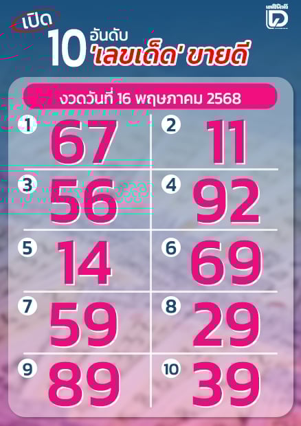 เปิด 10 เลขเด็ดขายดี เกลี้ยงแผงงวด 16 พ.ค. 68 คอหวยกว้านซื้อลุ้นเป็นเศรษฐีใหม่ มีเลขไหนบ้าง ส่องด่วน