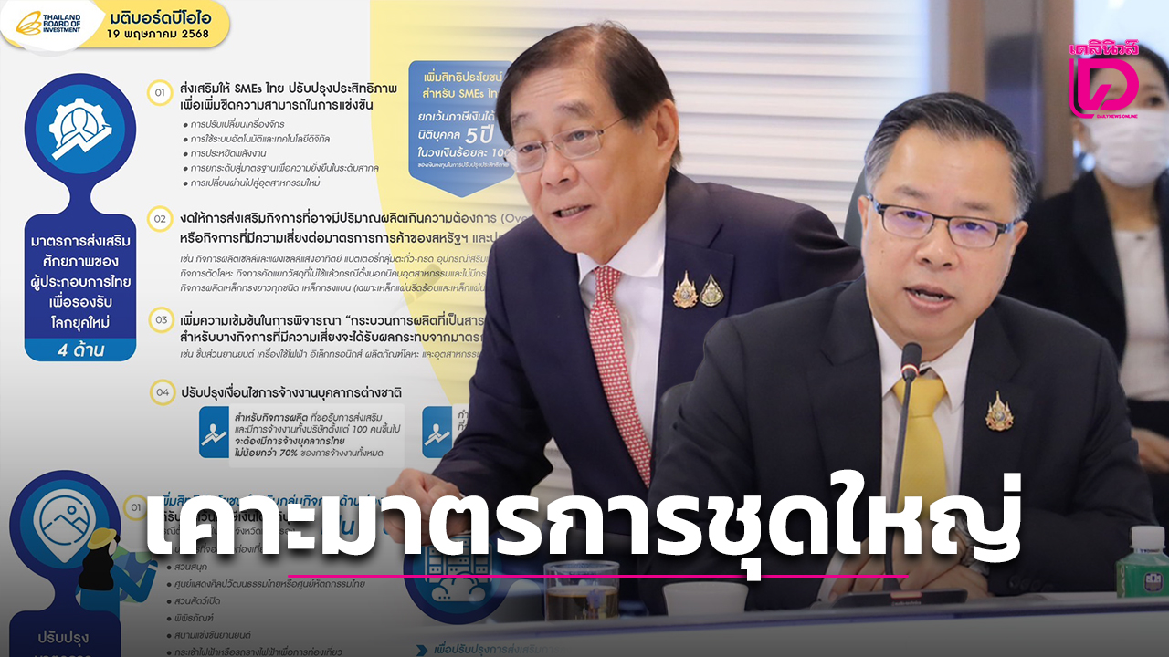 นายนฤตม์ เทอดสถีรศักดิ์ เลขาธิการคณะกรรมการส่งเสริมการลงทุน (บีโอไอ) เปิดเผยว่า เมื่อวันที่ 19 พฤษภาคม 2568 การประชุมคณะกรรมการส่งเสริมการลงทุน (บอร์ดบีโอไอ) ซึ่งมีนายพิชัย ชุณหวชิร รองนายกรัฐมนตรีและรัฐมนตรีว่าการกระทรวงการคลัง เป็นประธาน ได้เห็นชอบ “มาตรการส่งเสริมศักยภาพของผู้ประกอบการไทยเพื่อรองรับโลกยุคใหม่” โดยมุ่งยกระดับขีดความสามารถในการแข่งขันของ SMEs ไทย รักษาสมดุลทางเศรษฐกิจ ภายใต้สภาวะตลาดที่มีความผันผวน เพื่อลดความเสี่ยงและผลกระทบจากมาตรการการค้าของสหรัฐอเมริกา และเปิดโอกาสให้ผู้ประกอบการไทยในหลากหลายอุตสาหกรรมได้เข้าเป็นส่วนหนึ่งของ Supply Chain ระดับโลก โดยมีมาตรการสำคัญ 4 ด้าน ดังนี้