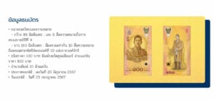 ทั้งนี้ ประชาชนที่สนใจ สามารถติดต่อขอแลกธนบัตรที่ระลึกนี้ได้ที่ธนาคารพาณิชย์ ธนาคารออมสิน ธนาคารเพื่อการเกษตรและสหกรณ์การเกษตร ธนาคารอาคารสงเคราะห์ และธนาคารอิสลามแห่งประเทศไทย และที่ศูนย์การเรียนรู้ ธปท. ตั้งแต่วันที่ 23 กรกฎาคม 2567 เป็นต้นไป