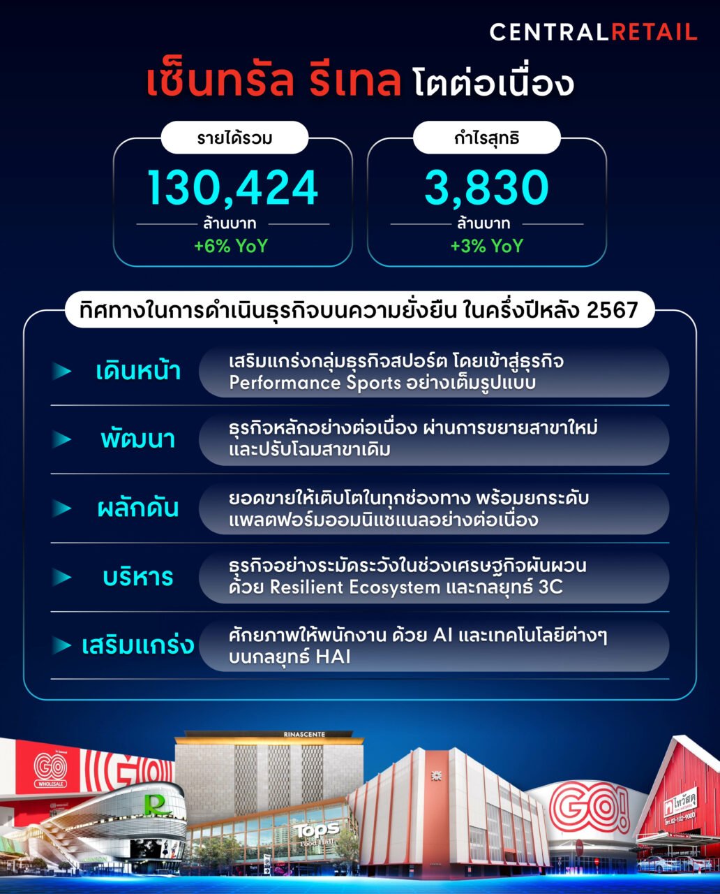 เซ็นทรัล รีเทล โตต่อเนื่อง กวาดรายได้ 130,424 ลบ. โต 6% ปิดดีลกลุ่มธุรกิจสปอร์ต พร้อมลุยธุรกิจครึ่งปีหลัง รับไฮซีซั่น-เศรษฐกิจเวียดนามบูม
