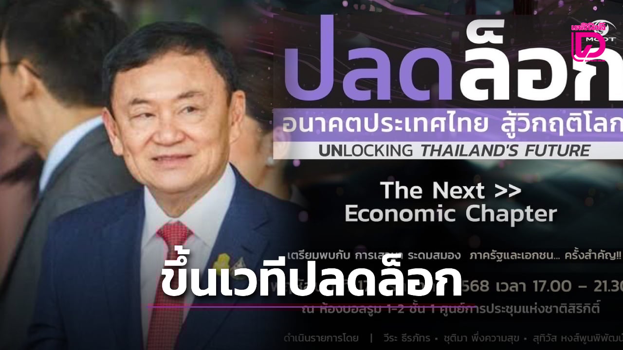 “ทักษิณ” ขึ้นเวที อสมท 9MCOT โชว์ปลดล็อกอนาคตประเทศไทย พร้อมอัดคลิปสั้น มั่นใจพาไทยฟื้น นำเศรษฐกิจกลับมาได้เหมือนเดิม ด้านรัฐ-เอกชน ตบเท้าร่วมเสวนา ฉายภาพหนทางฟื้นประเทศไทย