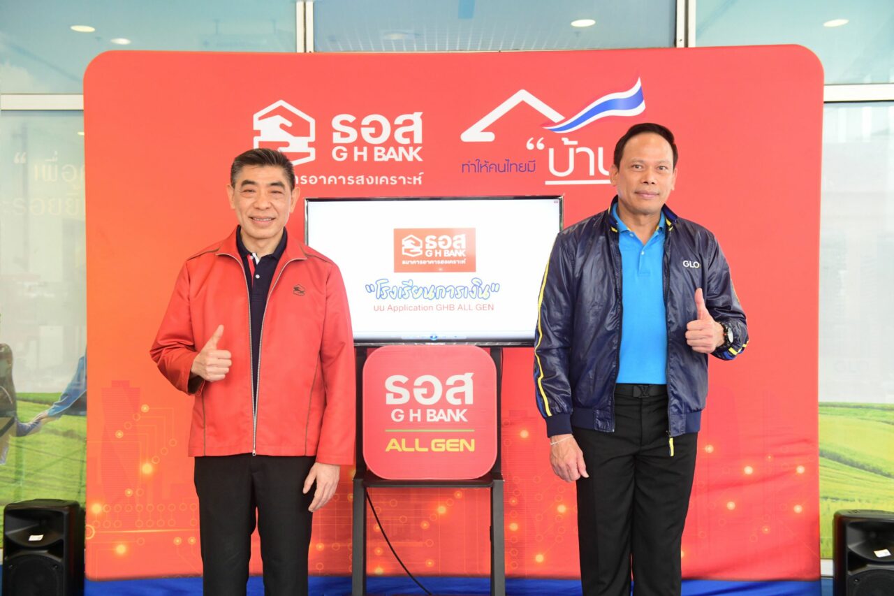 นายกมลภพ วีระพละ กรรมการผู้จัดการ ธนาคารอาคารสงเคราะห์ (ธอส.) พร้อมด้วย พันโท หนุน ศันสนาคม ผู้อำนวยการสำนักงานสลากกินแบ่งรัฐบาล ร่วมกันเปิดการให้บริการฟังก์ชัน “โรงเรียนการเงิน” ผ่านระบบดิจิทัลบน Application : GHB ALL GEN เพื่อเพิ่มความสะดวกให้กับประชาชนทั่วไปที่ต้องการขอสินเชื่อแต่ไม่สามารถแสดงเอกสารหรือแหล่งที่มาของรายได้มาเปิดบัญชีเงินฝากออมทรัพย์ของ ธอส. เพื่อออมเงินอย่างสม่ำเสมอผ่าน Application : GHB ALL GEN เป็นระยะเวลาไม่น้อยกว่า 12 เดือน (ทุกบัญชีรวมกัน)