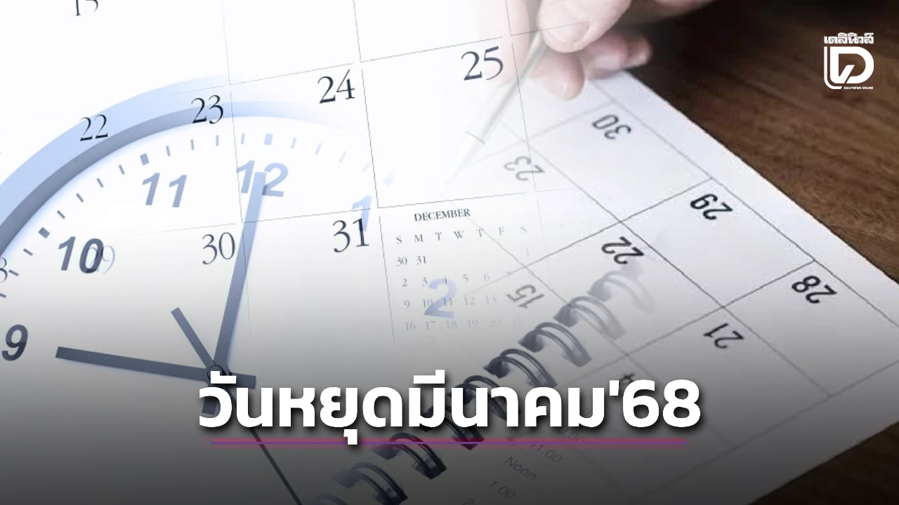 เดือน มีนาคม 2568 มีวันหยุด วันสำคัญอะไรบ้าง เช็กวันหยุดราชการ วันหยุดธนาคาร วันหยุดพนักงานเอกชน ดังนี้