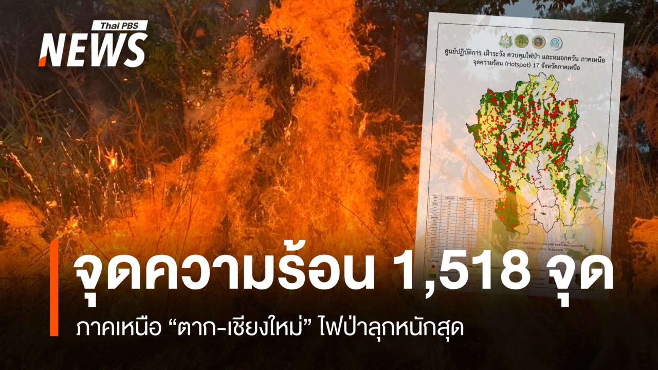 สถานการณ์ไฟป่าภาคเหนือ จุดความร้อน 1,518 จุด ป่าอนุรักษ์กลายเป็นพื้นที่สีแดง