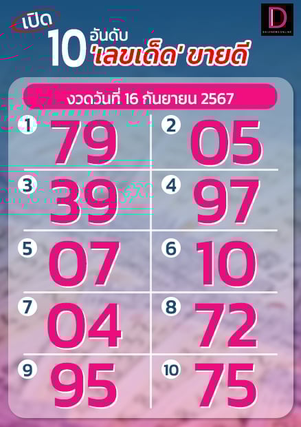 10 เลขเด็ด แนวทางคัมภีร์มหาเศรษฐี งวด 16 ก.ย. 67 คอหวยห้ามพลาดส่องด่วนลุ้นรวยก้อนโต เลขดัง 79 หลวงพ่อสุริยันต์ และ 05 แจ็ค แฟนฉัน ขายดิบขายดี