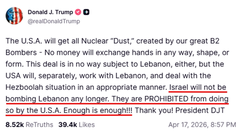 การที่ทรัมป์ใช้ถ้อยคำที่รุนแรงอย่าง "PROHIBITED" หรือการสั่งห้ามโจมตีเลบานอนโดยตรง ถือเป็นการแสดงอำนาจเหนืออธิปไตยทางการทหารของอิสราเอลอย่างที่ไม่เคยปรากฏมาก่อนในลักษณะเปิดเผยเช่นนี้
