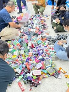 กวาดล้าง! สคบ.นำเจ้าหน้าที่บุกตรวจรวบร้านขายบุหรี่ไฟฟ้า ใจกลางเมืองระยอง หลังมีร้องเรียนขายให้เด็กเยาวชน พร้อมยึดของกลาง 7,500 ชิ้น มูลค่า 2.6 ล้านบาท