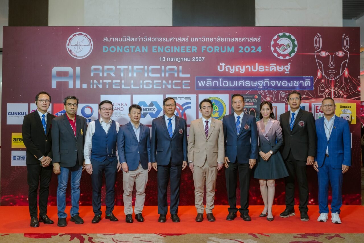 สมาคมนิสิตเก่าวิศวกรรมศาสตร์ มหาวิทยาลัยเกษตรศาสตร์ สร้างปรากฏการณ์ใหม่งานวิชาการ เมื่อสามารถระดมกูรูด้าน AI ร่วมระดมสมองเปิดมุมมองความสำคัญในการใช้นวัตกรรมพัฒนาชาติ ในงานสัมมนาวิชาการประจำปี Dongtan Engineer Forum 2024 “ AI . ARTIFICIAL INTELLIGENCE ปัญญาประดิษฐ์ พลิกโฉมเศรษฐกิจของชาติ” โดยมี 9 องค์ปาฐก ซึ่งเป็นผู้นำระดับสูงในองค์กรต่างๆ ทั้งจากภาครัฐ ภาคเอกชนภาควิชาการ เผยงานนี้มีผู้สนใจเข้าร่วมงานกันอย่างคับคั่งกว่า300 ชีวิต และต่างตื่นตากับการเปิดตัวผลงานปัญญาประดิษฐ์จากฝีมือนิสิตเก่าที่คว้ารางวัลระดับโลก