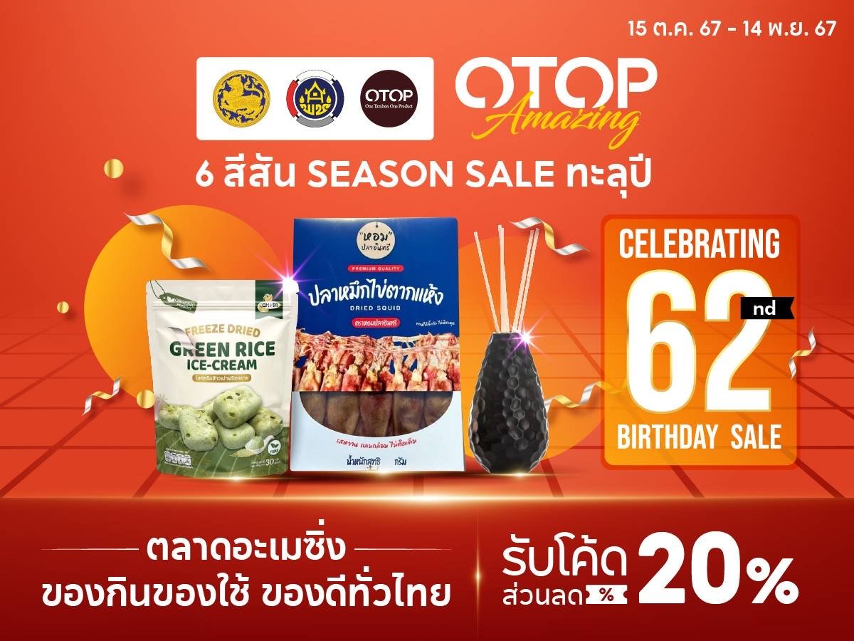1. “Celebrating 62nd Birthday Sale” ระหว่างวันที่ 15 ตุลาคม-14 พฤศจิกายน 2567