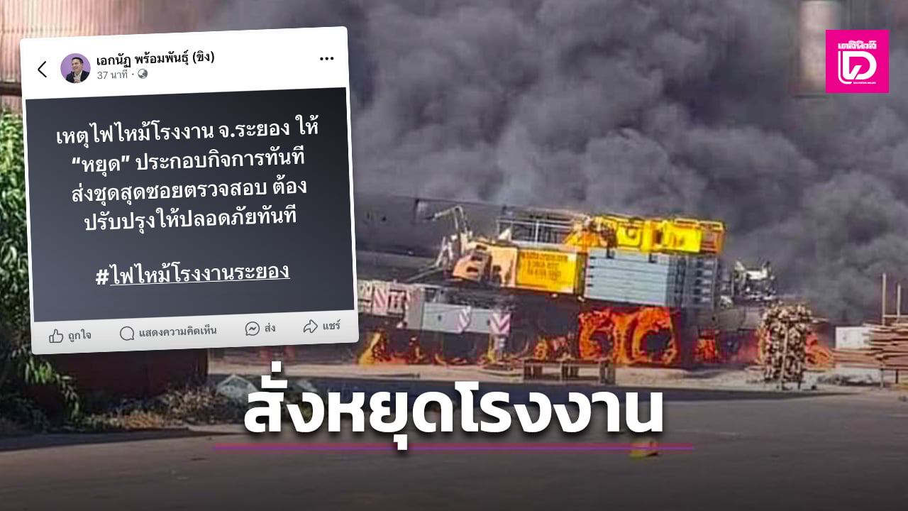"เอกนัฏ" สั่งโรงงานไฟไหม้ที่ระยอง หยุดประกอบกิจการทันที พร้อมสั่งทีมสุดซอยลงพื้นที่ตรวจสอบ ปรับปรุงให้ปลอดภัยเต็มที่