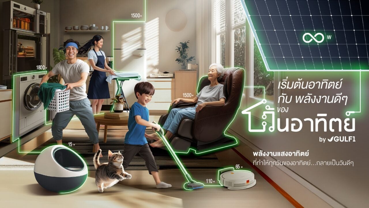 บริษัท กัลฟ์1 จำกัด (GULF1) ในเครือบริษัท กัลฟ์ เอ็นเนอร์จี ดีเวลลอปเมนท์ จำกัด (มหาชน) (GULF) ประกาศเปิดตัวแบรนด์ “วันอาทิตย์” โซลาร์บ้านครบวงจร พร้อมแผนการตลาดเชิงรุก เปิดช่องทางจำหน่ายทาง AIS Shop ทั่วประเทศ เพื่อตอบสนองความต้องการของผู้บริโภคที่ใส่ใจสิ่งแวดล้อมและต้องการลดค่าใช้จ่ายด้านพลังงาน
