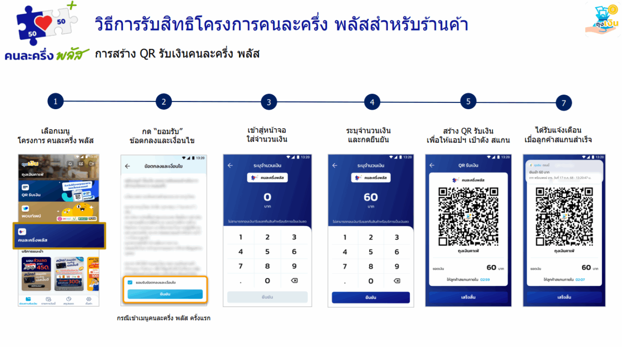 วิธีใช้คนละครึ่ง พลัส สำหรับร้านค้า มีขั้นตอนดังนี้