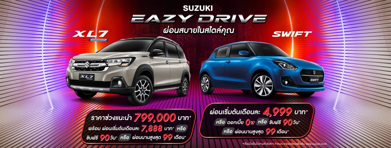 สำหรับซูซูกิ เตรียมนำเสนอแคมเปญพิเศษ “SUZUKI EAZY DRIVE ผ่อนสบายในสไตล์คุณ” ให้ลูกค้าสามารถเลือกรับข้อเสนอสุดคุ้ม ผ่อนง่าย จ่ายสบาย มากกว่าที่เคยโดยสามารถเลือกรับดอกเบี้ย 0% หรือ ขับฟรี 90 วัน พร้อมฟรีประกันภัยชั้นหนึ่งโดยแคมเปญ “SUZUKI EAZY DRIVE ผ่อนสบายในสไตล์คุณ” เริ่มตั้งแต่วันนี้ 1 มิถุนายน-30 มิถุนายน 2567