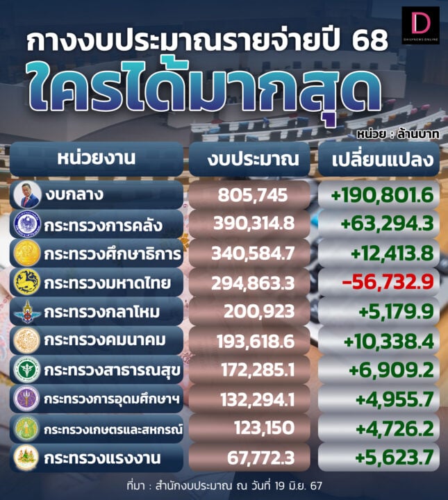 ใครได้มากสุด! กางงบประมาณปี 2568 วงเงิน 3.752 ล้านล้านบาท หน่วยงาน-กระทรวงไหนได้เท่าไหร่ เปิด 10 อันดับใครได้มากที่สุด ถูกดึงงบมาใช้แจกเงินดิจิทัล 10,000 บาทด้วย