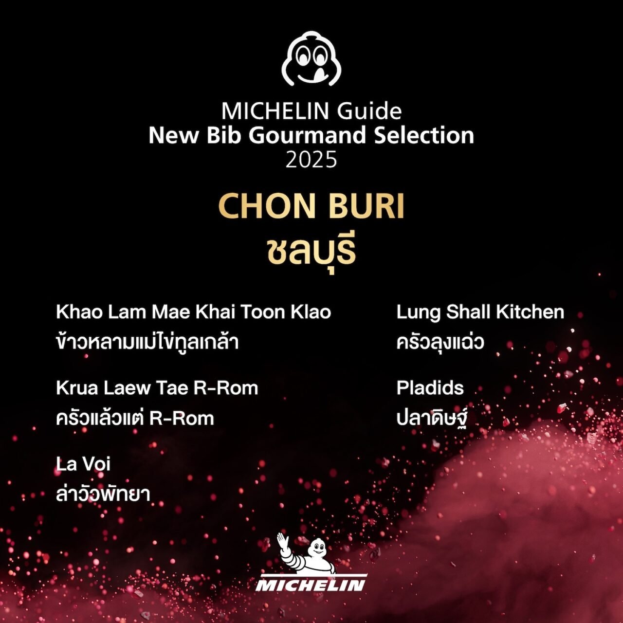 เกว็นดัล ปูลเล็นเนค(Gwendal Poullennec)ผู้อำนวยการฝ่ายจัดทำคู่มือ‘มิชลิน ไกด์’ทั่วโลก เปิดเผยว่าเพื่อจุดกระแสความสนใจต่องานประกาศผลรางวัลดาวมิชลิน ซึ่งจะจัดขึ้นในวันที่28พ.ย.2567นี้มิชลินได้เผยรายชื่อร้านอาหารคุณภาพดีราคาย่อมเยา ที่ผ่านการคัดเลือกให้ได้รับรางวัล ‘บิบ กูร์มองด์’(Bib Gourmand)ประจำปี2568รวมทั้งสิ้น156ร้าน ในจำนวนนี้เป็นร้านที่ติดอันดับในคู่มือ‘มิชลิน ไกด์’ประเทศไทยครั้งแรก20ร้าน โดย5ร้านอยู่ในจังหวัดชลบุรี ซึ่งเป็นจุดหมายปลายทางใหม่ที่คู่มือ‘มิชลิน ไกด์’ฉบับประเทศไทย ประจำปี2565(The MICHELIN Guide Thailand 2025)ขยายขอบเขตเข้าดำเนินการสำรวจและจัดอันดับเป็นปีแรก