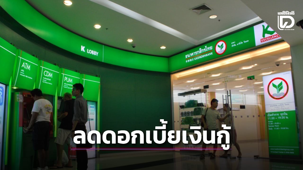 ธนาคารกสิกรไทย ลดดอกเบี้ยเงินกู้สูงสุด 0.25% เพื่อลดภาระหนี้ให้ลูกค้าทุกกลุ่ม มีผล 4 มี.ค. 2568