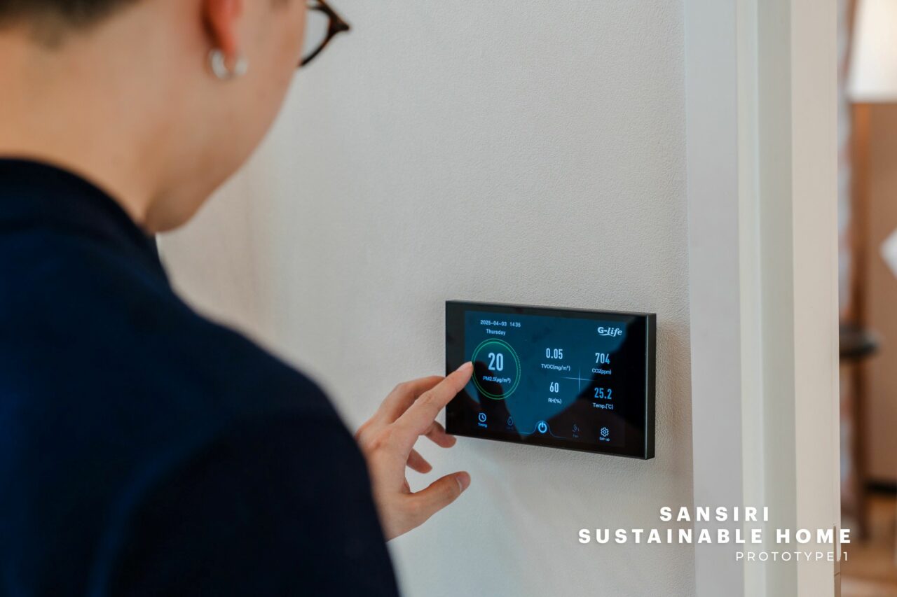 Sansiri Sustainable Home – Prototype 1 จึงไม่ใช่เพียงแค่บ้านที่เป็นมิตรกับสิ่งแวดล้อมแต่ยังมอบคุณภาพชีวิตที่ดีกว่าให้กับผู้อยู่อาศัย ทั้งด้านสุขภาพ ความสบาย และความคุ้มค่าในระยะยาวรวมถึงประโยชน์ที่ลูกค้าจะได้รับ อาทิ ประหยัดค่าใช้จ่าย ลดค่าไฟฟ้าและน้ำประปาในระยะยาวรวมถึงสุขภาพที่ดีขึ้น จากการอยู่อาศัยในสภาพแวดล้อมที่มีอากาศบริสุทธิ์ แสงธรรมชาติที่เพียงพอ และปราศจากสารพิษ อากาศเย็นสบาย แม้ในช่วงที่อากาศร้อนจัด ช่วยลดการพึ่งพาเครื่องปรับอากาศ ยิ่งไปกว่านั้น Sansiri Sustainable Home – Prototype 1 นี้ สามารถลดการปล่อยก๊าซเรือนกระจก ได้ถึง 35% เทียบเท่ากับ 135,000 กิโลกรัมคาร์บอนไดออกไซด์ หรือการปลูกต้นไม้กว่า 14,300 ต้นต่อบ้าน 1 หลัง