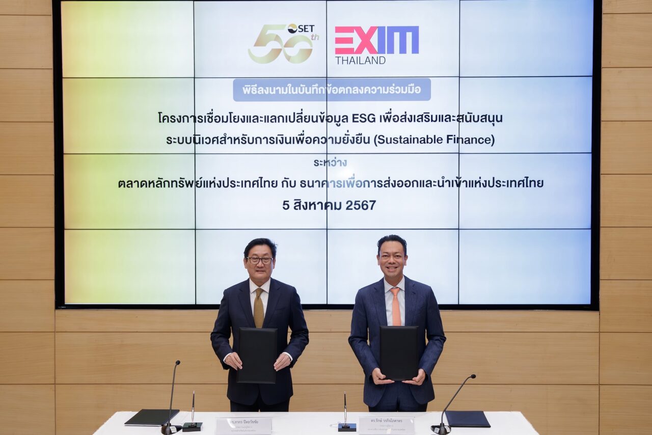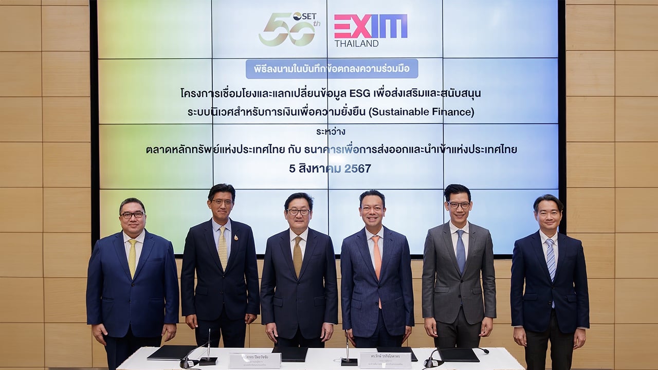 นอกจากนี้ ยังเดินหน้าสร้างความร่วมมือกับหน่วยงานทั้งในและต่างประเทศเพื่อให้มีการแลกเปลี่ยนและนำข้อมูลไปใช้อย่างต่อเนื่อง โดยเฉพาะการใช้ข้อมูล ESG เพื่อการระดมทุนและการลงทุน โดยล่าสุดได้ลงนามในบันทึกข้อตกลงความร่วมมือกับ EXIM BANK ภายใต้โครงการเชื่อมโยงและแลกเปลี่ยนข้อมูล ESG เพื่อส่งเสริมและสนับสนุนระบบนิเวศสำหรับการเงินเพื่อความยั่งยืน (Sustainable Finance) รวมถึงข้อมูลการดำเนินงานด้านความยั่งยืนของบจ. ผ่านระบบ ESG Data Platform และสนับสนุนระบบ SET Carbon สำหรับลูกค้าของธนาคารให้มีการดำเนินงานตามเป้าหมายความยั่งยืน โดยตลาดหลักทรัพย์ฯ และ EXIM BANK จะร่วมกันพัฒนาสินเชื่อโดยใช้ข้อมูลด้าน ESG ประกอบการพิจารณาตั้งแต่ไตรมาสที่ 3 ปี 2567 และเริ่มให้บริการอย่างเต็มรูปแบบในปี 2568