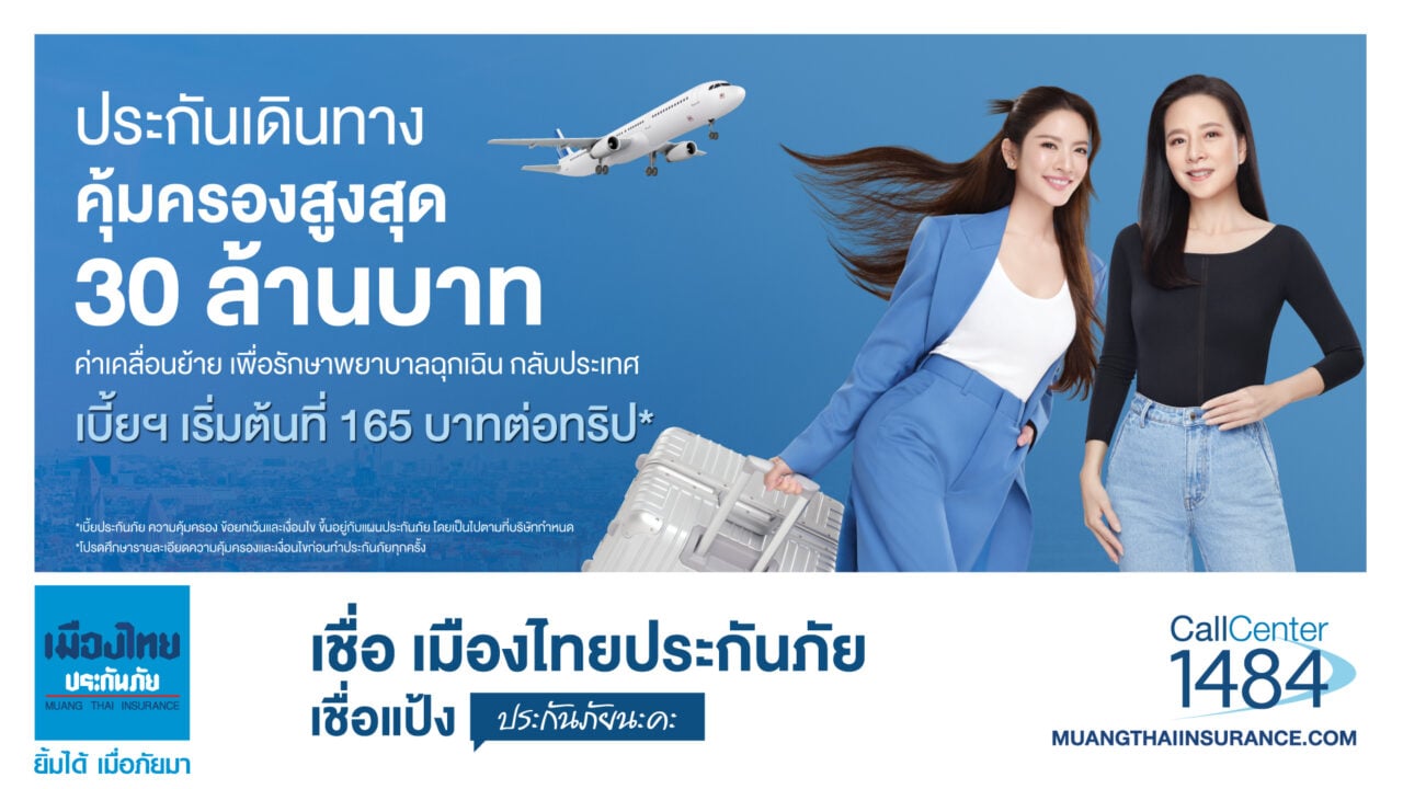 คาดความคุ้มครองกับ “เมืองไทย Happy Trip” พร้อมเสริมความมั่นใจให้กับลูกค้า ด้วยความคุ้มครองที่ครอบคลุม และให้วงเงินคุ้มครองสูงสุดถึง 30,000,000 บาท สำหรับประกันการเดินทางเมืองไทย Happy Trip ให้ความคุ้มครองครอบคลุมทั้งค่ารักษาพยาบาลจากการเจ็บป่วยหรืออุบัติเหตุในต่างประเทศ คุ้มครองทรัพย์สินส่วนตัวเสียหายหรือสูญหาย คุ้มครองกรณีเที่ยวบินล่าช้าหรือถูกยกเลิก พร้อมเสริมความมั่นใจด้วยบริการช่วยเหลือฉุกเฉินทั่วโลก MTI Travel Assistance โดยราคาเบี้ยประกันภัยเริ่มต้นเพียง 165 บาทต่อทริป และมีแผนให้เลือกได้ทั้งแผนรายเดี่ยว แผนรายกลุ่ม และแผนแบบครอบครัวดูรายละเอียดเพิ่มเติมคลิก https://bit.ly/3DjELWk สนใจติดต่อ Call center 1484 หรือตัวแทนและนายหน้าเมืองไทยประกันภัยทั่วประเทศ
