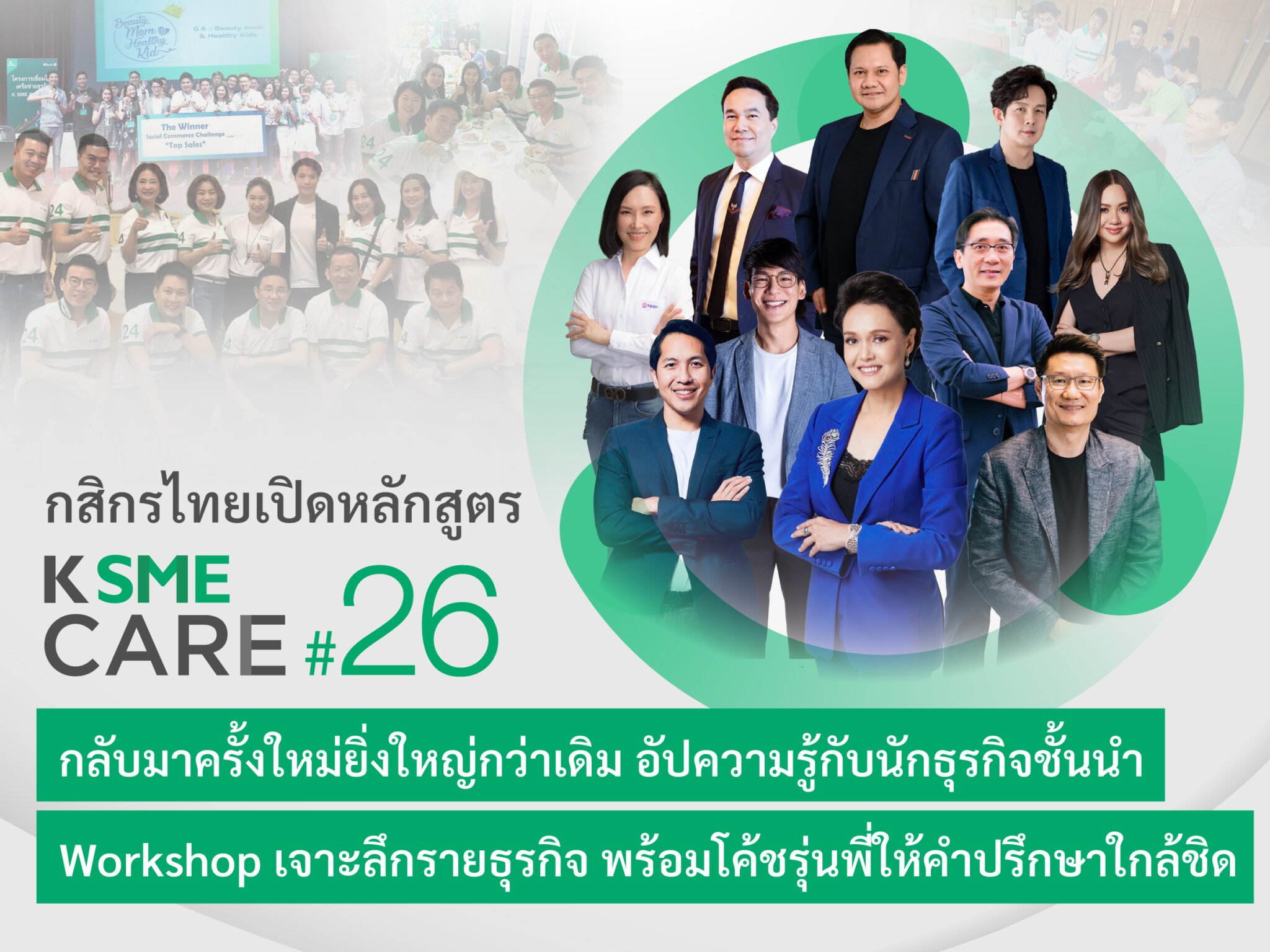 ธนาคารกสิกรไทย เปิดหลักสูตร K SME CARE รุ่น 26 กลับมาครั้งใหม่ยิ่งใหญ่กว่าเดิม ยกระดับความรู้กับ 10 นักธุรกิจชั้นนำ เจาะลึกรายอุตสาหกรรม พร้อมโค้ชรุ่นพี่ให้คำปรึกษา เสริมแกร่ง SME ให้โตไปได้อีก