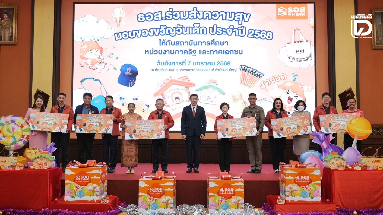 ธนาคารอาคารสงเคราะห์ (ธอส.) ร่วมส่งความสุข มอบของขวัญวันเด็ก ประจำปี 2568 ให้กับสถาบันการศึกษา หน่วยงานภาครัฐ และภาคเอกชน