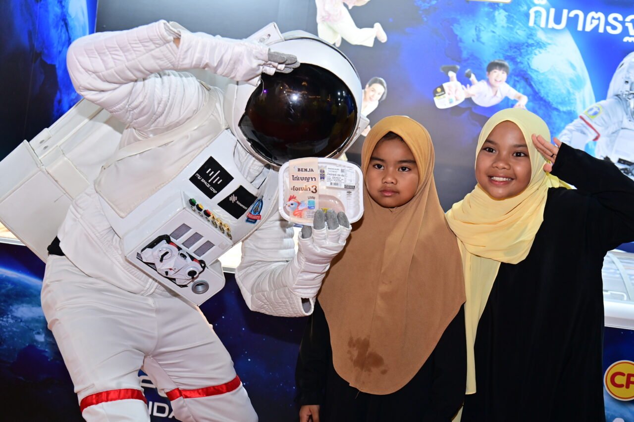 นอกจากนี้ อีกหนึ่งไฮไลต์ภายในงาน คือ บูธจัดแสดงภารกิจ โครงการ “Thai Food Mission to Space – ไก่ไทยจะไปอวกาศ” นำเสนอผลิตภัณฑ์เนื้อไก่ แบรนด์ CP ที่ผ่านการทดสอบตามมาตรฐานความปลอดภัยด้านอาหารขององค์การ NASA เป็นมาตรฐานความปลอดภัยระดับสูงสุดที่นักบินอวกาศรับประทานได้ โครงการนี้ ถือเป็นก้าวสำคัญในการยกระดับอุตสาหกรรมไก่ของไทย เสริมสร้างความเชื่อมั่นผลิตภัณฑ์ไก่ของไทย ทั้งด้านคุณภาพ ความปลอดภัย และได้มาตรฐาน