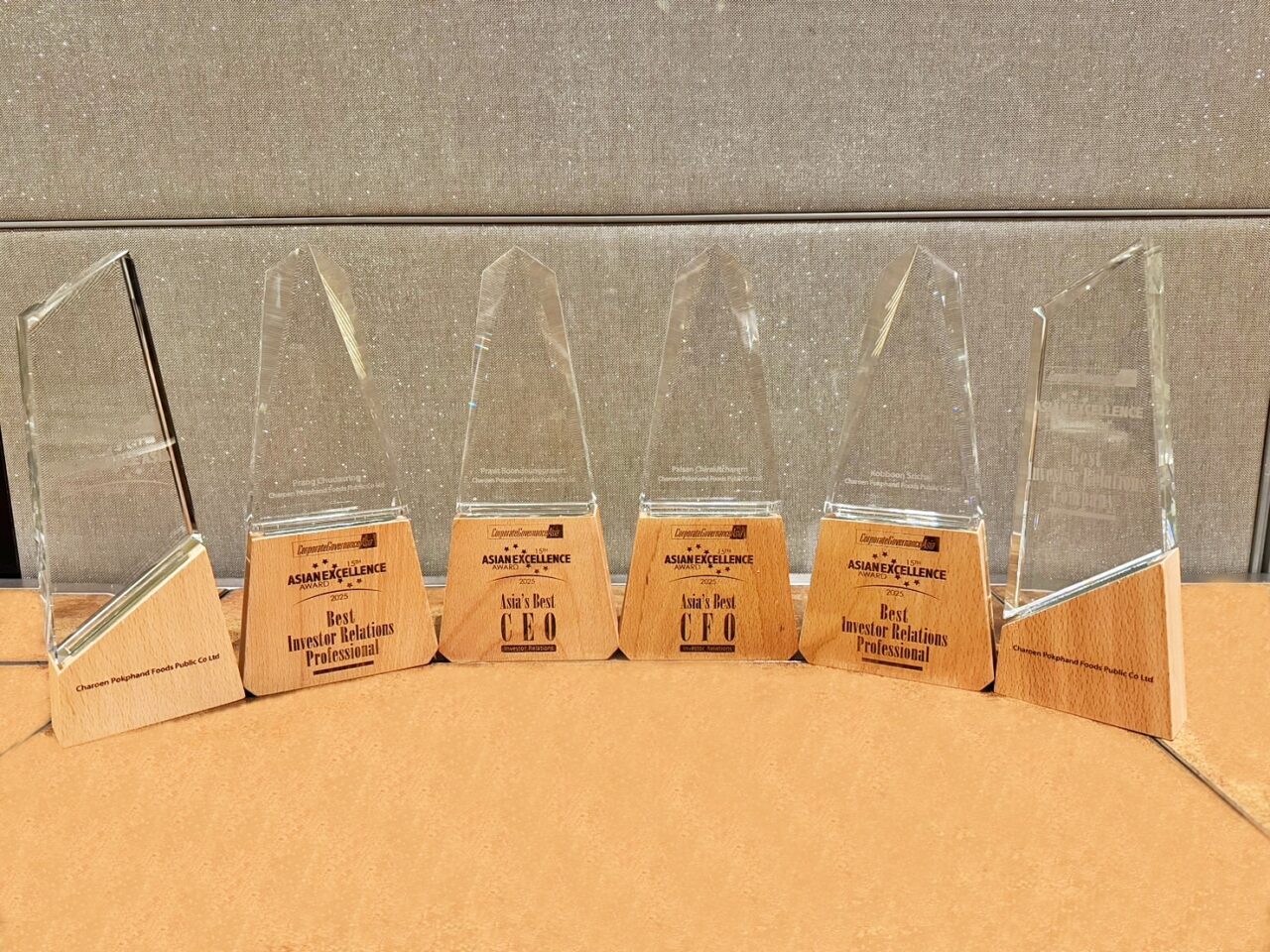 นอกจากนี้ ปีนี้ ซีพีเอฟยังคว้ารางวัลจากเวที Asian Excellence Award 2025 ได้แก่ รางวัลซีเอฟโอยอดเยี่ยมแห่งเอเชีย (Asia’s Best CFO) มอบให้ นายไพศาล จิระกิจเจริญ ประธานผู้บริหารฝ่ายการเงิน จากความสำเร็จในการบริหารการเงินและการวางแผนธุรกิจได้อย่างมีประสิทธิภาพ รางวัลนักลงทุนสัมพันธ์ยอดเยี่ยมแห่งเอเชีย (Best Investor Relations Professional) มอบให้ นางกอบบุญ ศรีชัย ผู้บริหารสูงสุด สายงานกิจการองค์กรและลงทุนสัมพันธ์ จากความโดดเด่นด้านการเปิดเผยข้อมูลตามหลักธรรมาภิบาลที่ดี