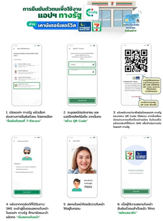 เมื่อดาวโหลดแอปทางรัฐลงบนมือถือ หรือสมาร์ตโฟนแล้ว จะต้องมีขั้นตอนยืนยันตัวตน มาดูวิธีการยืนยันตัวตน แอปทางรัฐ ผ่านเคาน์เตอร์เซอร์วิส เซเว่น-อีเลฟเว่น 7-11 ทำได้ดังนี้